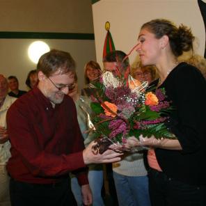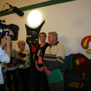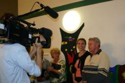 Im Oktober 2008 hatte sich das Fernsehen bei uns angemeldet. Und das kam so: Ein Mitglied unserer Chöre fühlte sich von der Fernsehsendung "Annettes Daschsalon" inspiriert, einen Chorsatz für das in der Sendung gesungene Lied "Über meiner Heimat Frühling" zu schreiben und sandte diesen an den Sender "ZDF Theaterkanal". Darauf meldete sich Annette Dasch, eine international gefeierte Sopranistin, bei uns und schlug vor, eine unserer Chorproben zu besuchen und einen Einspielfilm für die nächste Sendung zu drehen. Diese Probe fand dann am 14.10.2008 statt. Leider fiel unser Einspielfilm der knapp bemessenen Sendezeit zum Opfer und wurde nicht ausgestrahlt. Trotzdem war es für uns ein unvergessliches Erlebnis. Einige Bilder sollen einen kleinen Eindruck vermitteln.